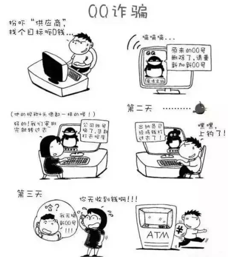 随后,对方又发来一份变更账号的“通知”,要求韦女士审核后将货款转到新的账号内。韦女士再次核对货款以及账号信息后,便按照审批流程逐层审批,于次日由公司出纳员将95.7万元的货款转给对方的新账号内。当公司致电供货商时,对方声称没有收到货款,并且没有韦女士所说的新汇款账号,同时韦女士发现昨天才添加的QQ已经从好友列表中删掉。这时候,韦女士才意识到与她聊天的“供货商”是骗子,便立即拨打110报警。