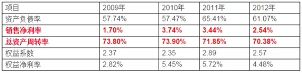 表中可以发现,销售利润率波动较大,资产周转率有所下降。一般情况下,销售利润波动从成本控制、三项费用上找原因;如果企业的总资产周转率较低,且长期处于较低的状态,企业应采取措施提高各项资产的利用效率,处置多余,闲置不用的资产,提高销售收入,从而提高总资产周转率。
