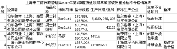 上海:4个批次羊绒服装抽检不合格