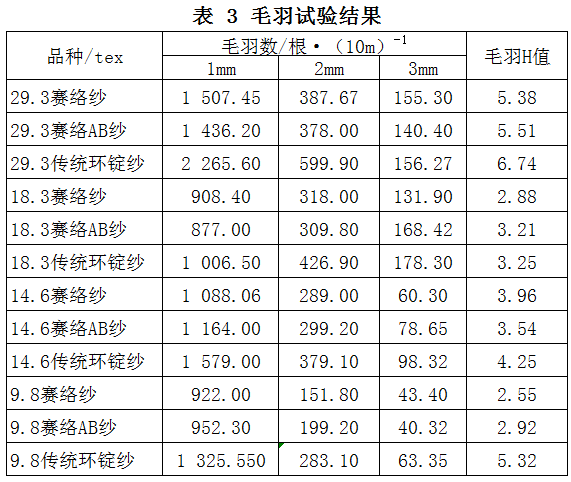 毛羽试验结果如表3所示。