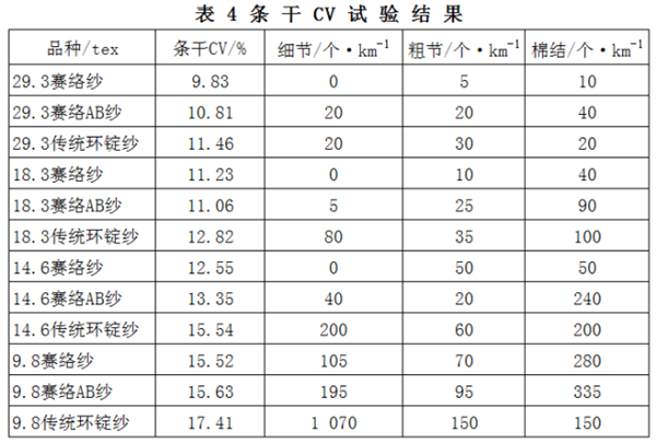 条干CV值试验结果如表4所示。