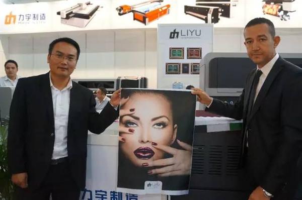汪宝东:土耳其现在政治不是很稳定,社会比较动荡,但我们的产品在土耳其卖得还是比较好,Optimum公司是我们在土耳其的代理商,从2003年就开始跟他合作,到现在已经有13年了。最早我们开始合作是喷绘机,然后是雕刻机、激光雕板机,再到UV卷材机、UV平板机,现在是数码印花机。