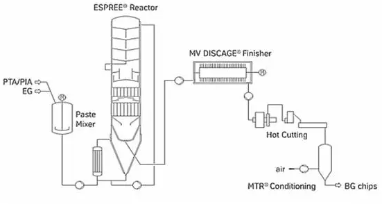 该技术原料消耗相对固相增粘降低45%,加工能耗降低30%,消除了螺杆挤出机对熔体的不利影响。有助于提高纤维质量均匀性,非常适合大型化少品种装置。