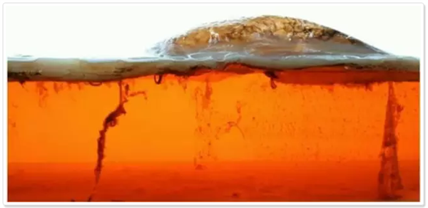 大约3天后,液体表面会出现气泡。液体中的糖分给细菌以生长的养分,所以它们开始“纺织”出非常非常细的纳米纤维。“这是很纯的纤维素,它们之间互相黏合,形成纤维层,最终在液体表面出现一大片纤维布。大约两到三周之后,我们能够看到一英寸厚的纤维毯。”