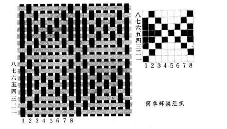 联合组织,两种或两种以上组织(原组织或变化组织)用不同的方法联合而成的一种新组织,称为联合组织。联合组织表面都有特殊的外观效应,常见的有如下几种:条格组织、透孔组织、网目组织、凸条组织、蜂巢组织、绉组织,这些组织都在服装、装饰织物上得到广泛应用。