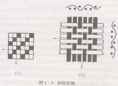 常见斜纹织物纹路平坦的斜纹布、哔叽、贡子突出的卡其、华达呢等。