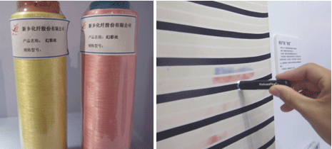 利用光致变色材料制作出的新型再生纤维素纤维,具有光变灵敏、亲肤柔软、绿色环保的特点。它可以由白色转变为多种艳丽色彩,也可由一种颜色基调瞬间转变为另一种颜色。