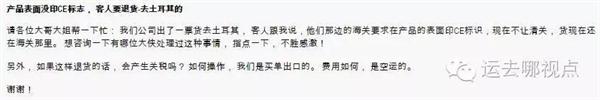 ▼另外一名外贸人的经历,空运货物,同样因为没印CE标志,而清不了关