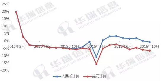 有人问,贬值有没有能刺激出口呢?其背后的机制过于复杂,似乎很难说得清楚,不过这里笔者注意到了一个现象。对于纺织品服装出口金额来说,以美元计价,其同比增速还在加速下滑,但是调整一下思路,笔者改为以人民币计价,发现虽然表现也较为一般,但是较之去年其实是有了微幅的改善。对于国内的出口商来说,似乎以人民币计价更能贴近出口量的变化。