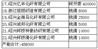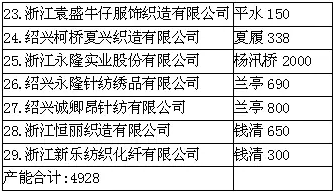 2、印染化纤、织造行业产能单位分别为万米/年、吨/年、万米/年