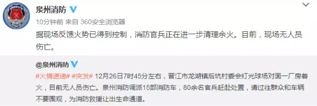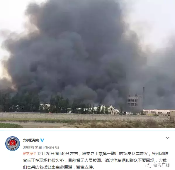 然而,同样是在泉州,昨天另一知名鞋服企业也发生了火灾......