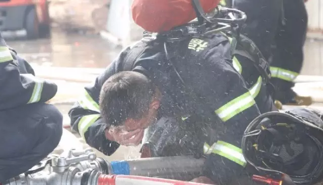 记者了解到,在混砖结构厂房一楼处还有发现一台空压机起火,里面约有一个2吨罐体,但险情很快就被现场消防官兵清除。