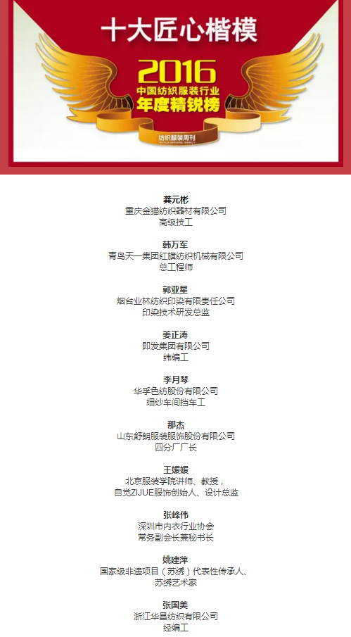 我们希望通过这份榜单,为行业创新发展带来更多力量,激励更多的人为行业转型升级、为纺织强国建设而努力奋斗。