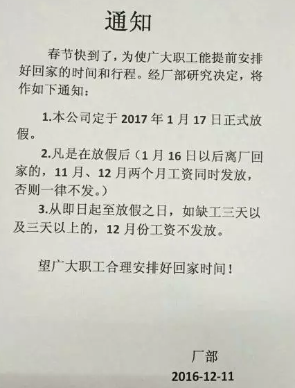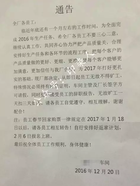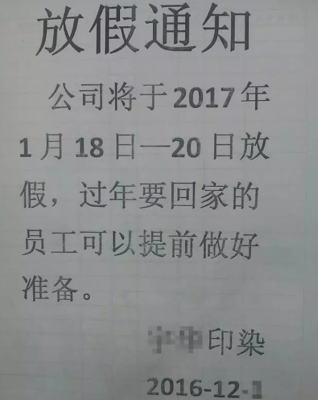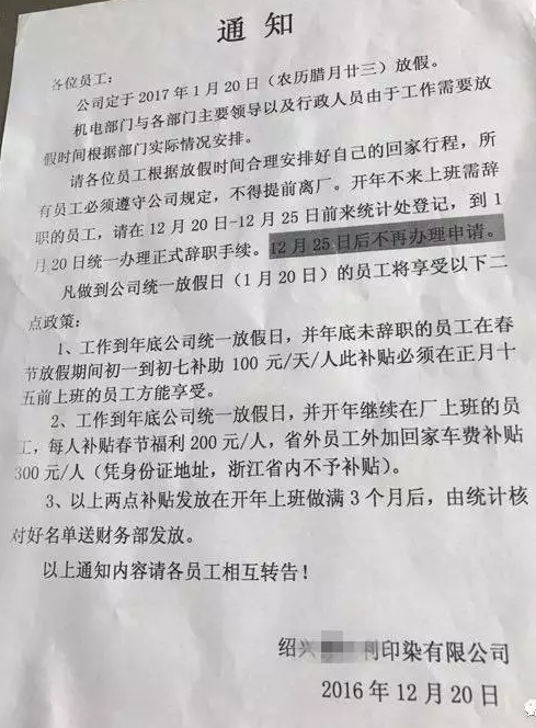 浙江航民某印花车间早于2016年12月15号发出停止接单通知